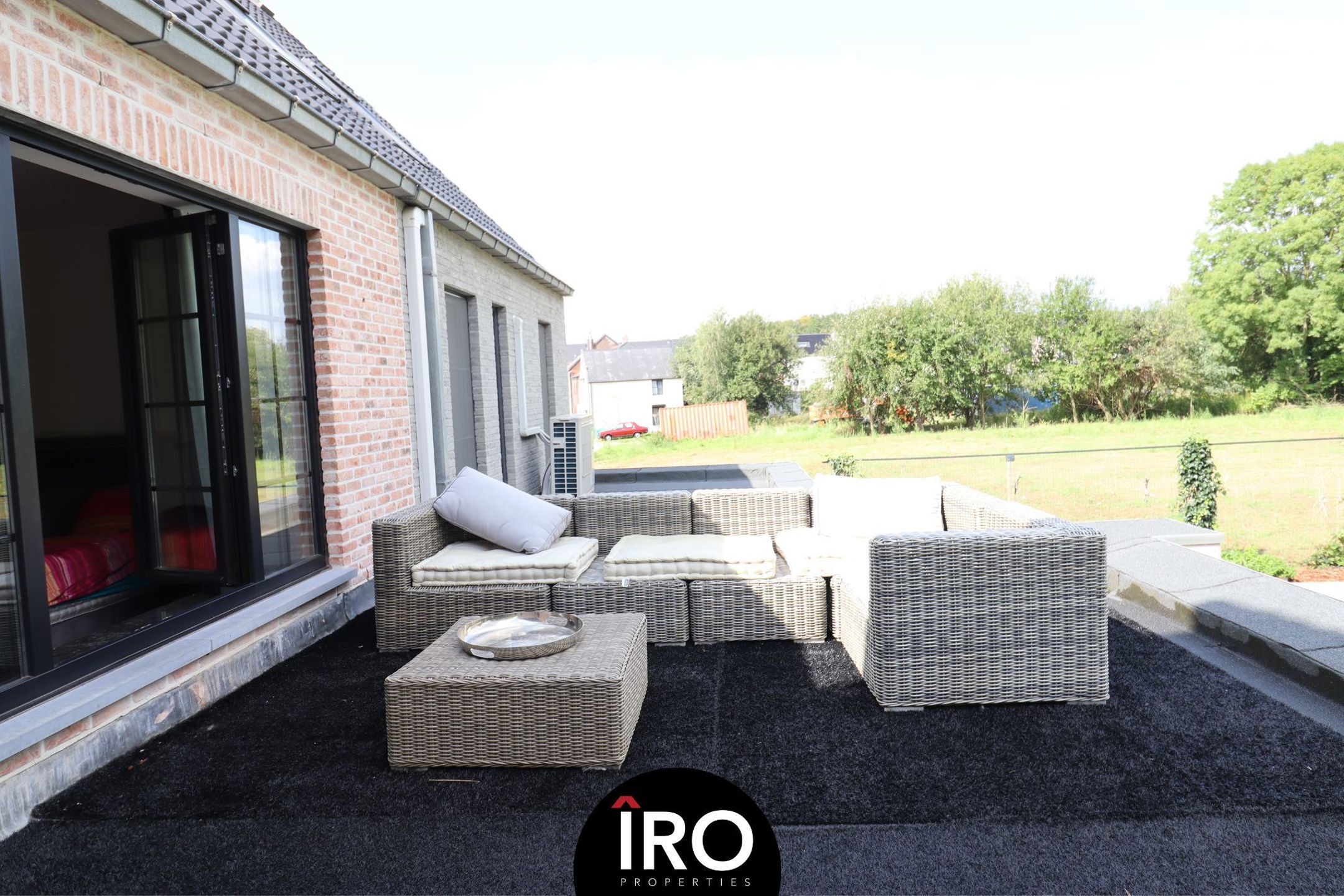 Nossegem - In a residential and green area, very beautiful single-family house built in 2020 with a living area of +/- 240 m2, with a beautiful garden with an area of 2 ares and 40 square meters and terrace facing (S-E) , it is composed as follows: entrance hall with cloakroom and wc, a spacious and bright living and dining room with a hyper-equipped American kitchen with a central island, the 1st floor is composed of two bedrooms with access to the terrace ( 23 and 12 m2), a laundry room, shower room with Italian shower and a double sink, separate toilet. The 2nd floor: attic converted into a bedroom of +/- 40 m2, garage,... photovoltaic panels, water softener, condensing boiler, double glazing,... PEB A. INFO & VISITS: 04 78 711 328.