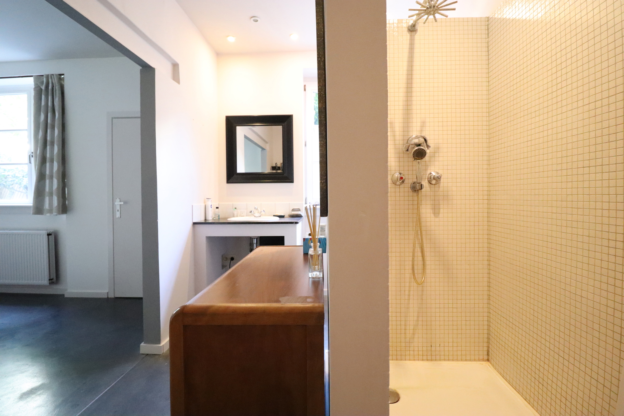 Inside an island in a quiet environment, this exceptional rear house with TERRACE with a living area of ±390m² is composed as follows: On the ground floor: an entrance hall opening onto a large living room of ± 95m2, a fully equipped open kitchen with dining room (±53m²), a bedroom with dressing room and shower room (±27m²), two other bedrooms (±20m² and ±21m²) including one with dressing room, a shower room with double basin, a separate toilet and a laundry room. Upstairs: a large multipurpose room of ±92m², an office (±15m²) and a bedroom (±18m²) with bathroom with shower, a cellar. Miscellaneous: double glazing throughout, gas boiler, thermostat, parlophone, alarm system. PEB: F To discover quickly! INFO & VISITS: 04 78 711 328.