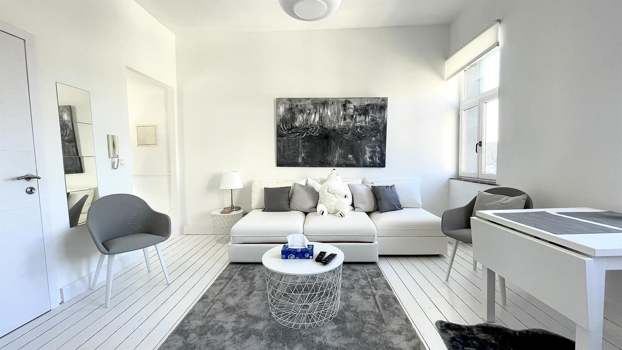 Quartier Européen, en face du parc cinquantenaire - Magnifique studio complètement rénové d'une surface habitable de +/- 45 m² avec une magnifique terrasse orientée SUD de +/- 14 m², le studio se compose: d'un hall, d'un séjour très lumineux avec un canapé-lit, d'une cuisine équipée, d'une salle de douches, wc,... + un forfait de 200€ de charges (qui comprennent TOUT: l'électricité, le chauffage, l'eau chaude/froide, l'internet & TV et les communs). Possibilité de louer en meublé: 1000€/mois. PEB G - INFOS & VISITES : 04 78 711 328.