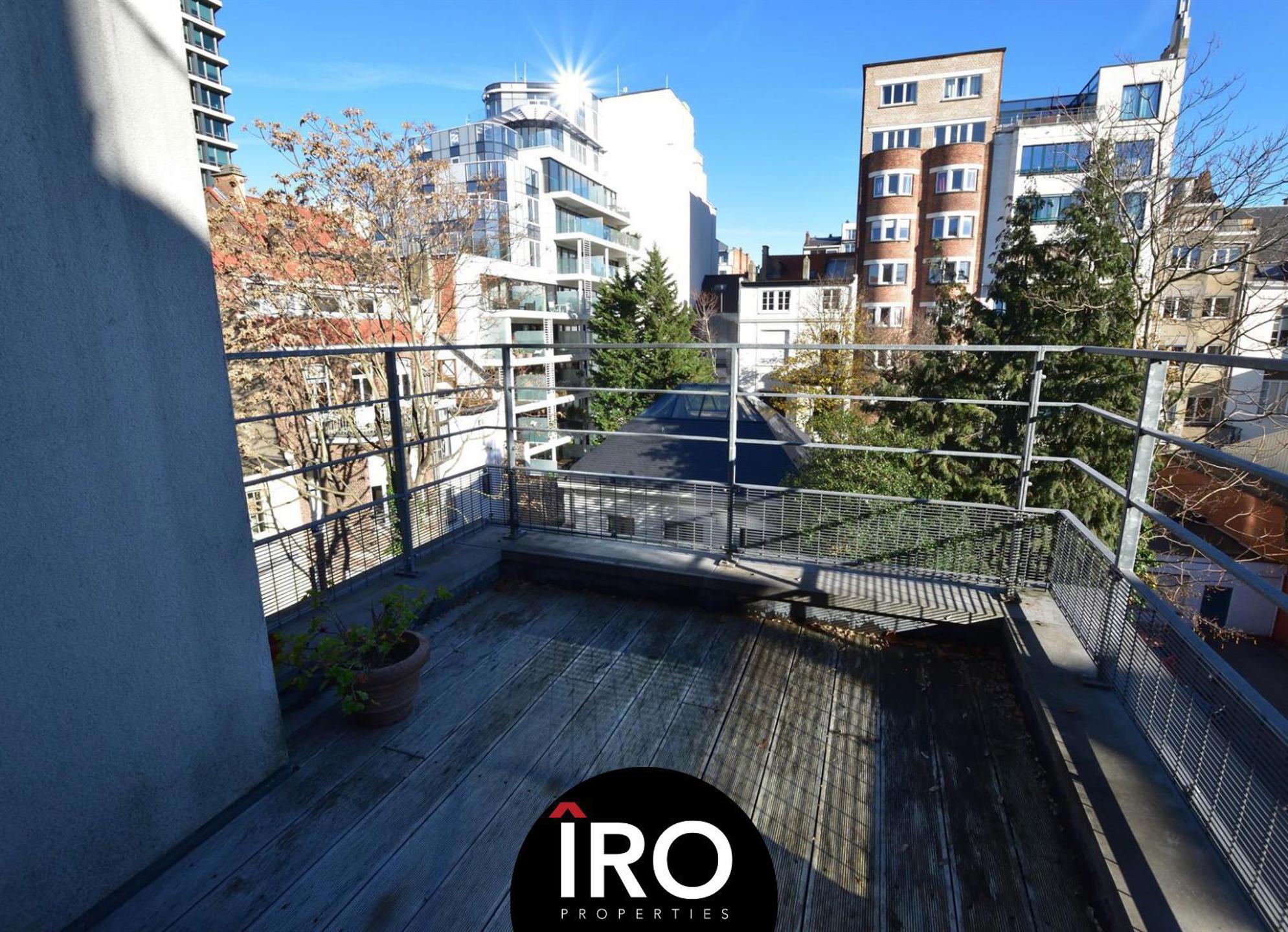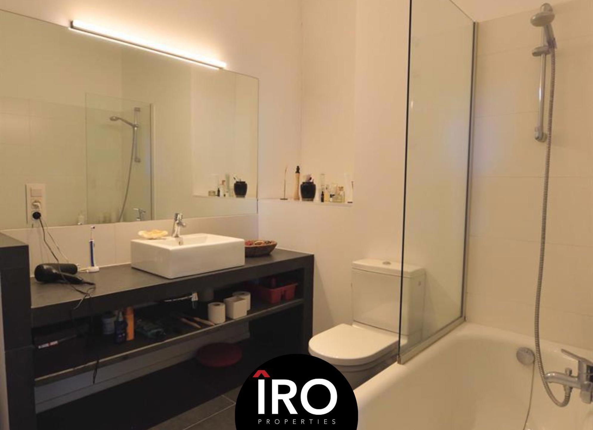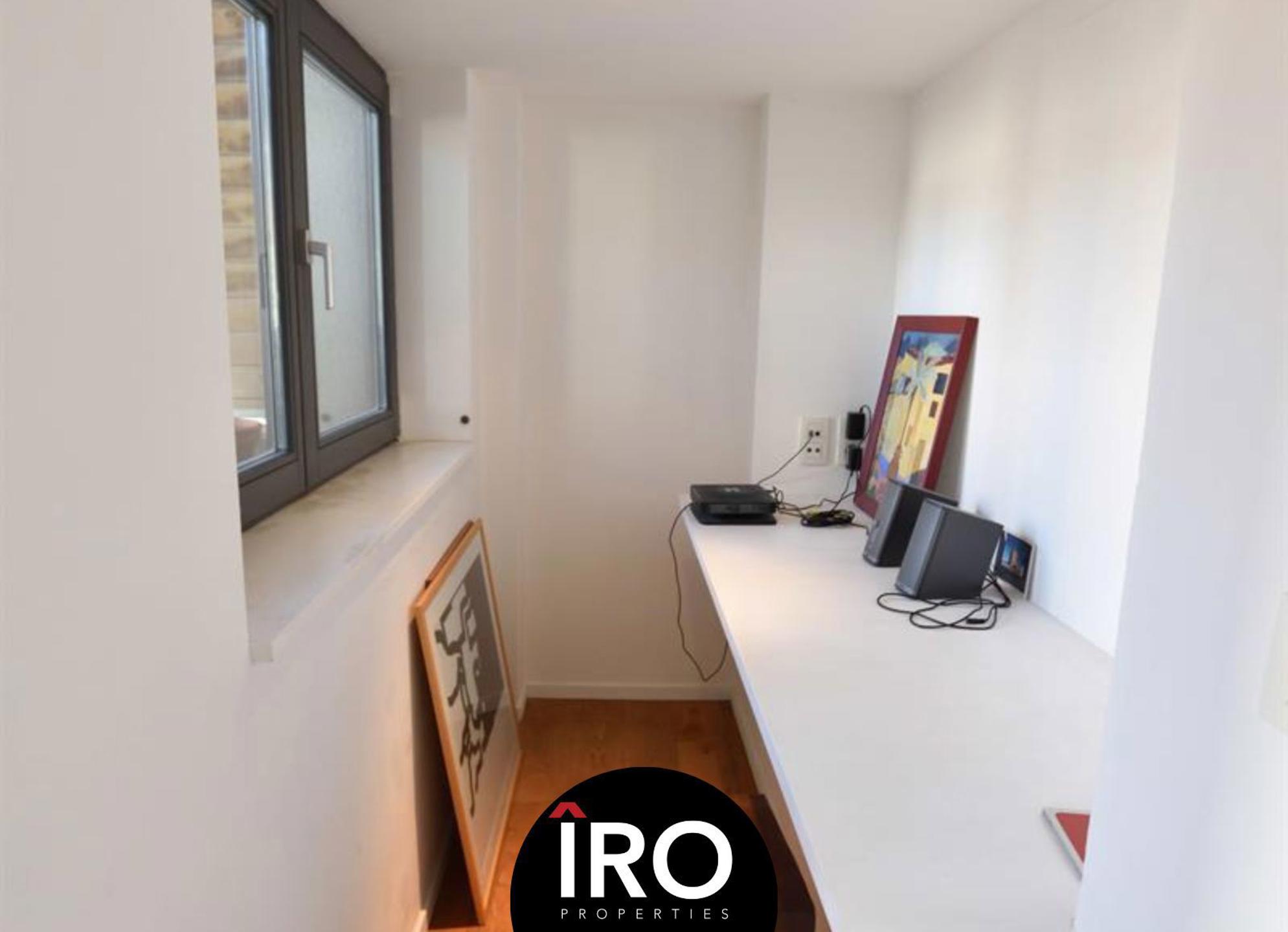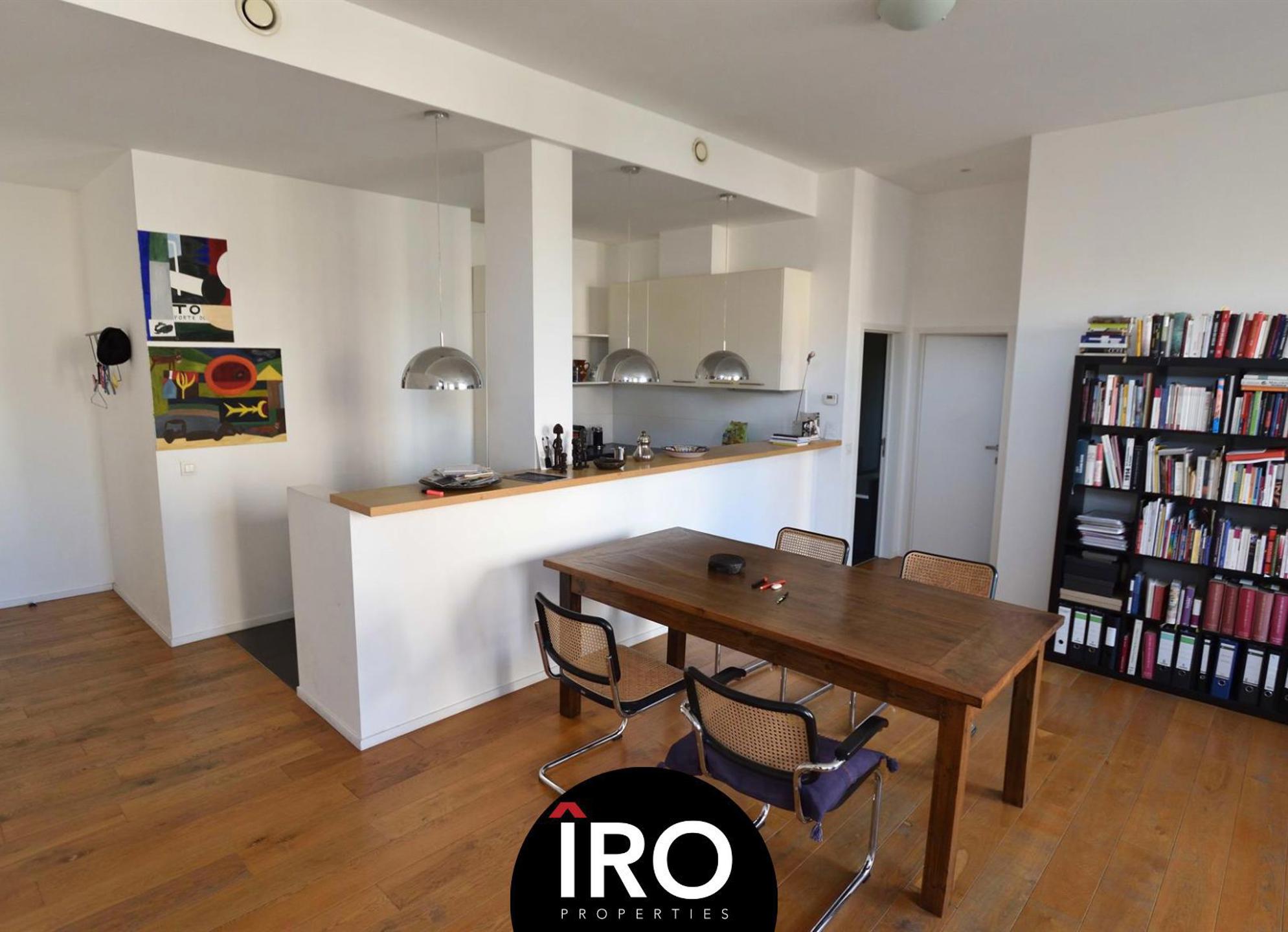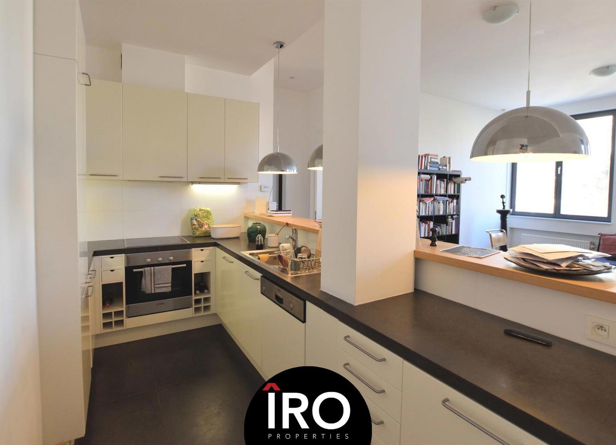 Proximité Place du Châtelain, au 2ème étage dans un bel immeuble de standing, superbe appartement d'environs 85 m² et d'une belle de terrasse de 14m², aménagé dans un style contemporain, se compose: d'un séjour spacieux et lumineux avec parquet, cuisine super équipée (frigo, freezer, lave-vaisselle, taque électrique de marque Bosch), une salle de bain, d'une chambre et d'un espace bureau, vidéophone, local vélo, ascenseur.,... + provision de charges de 260€ (chauffage, eau chaude, entretien des communs et assurance). Possibilité de louer un emplacement de parking à proximité 100€/mois. PEB D. INFOS & VISITES: Hevi 04 78 711 328 - ha@iroproperties.be.