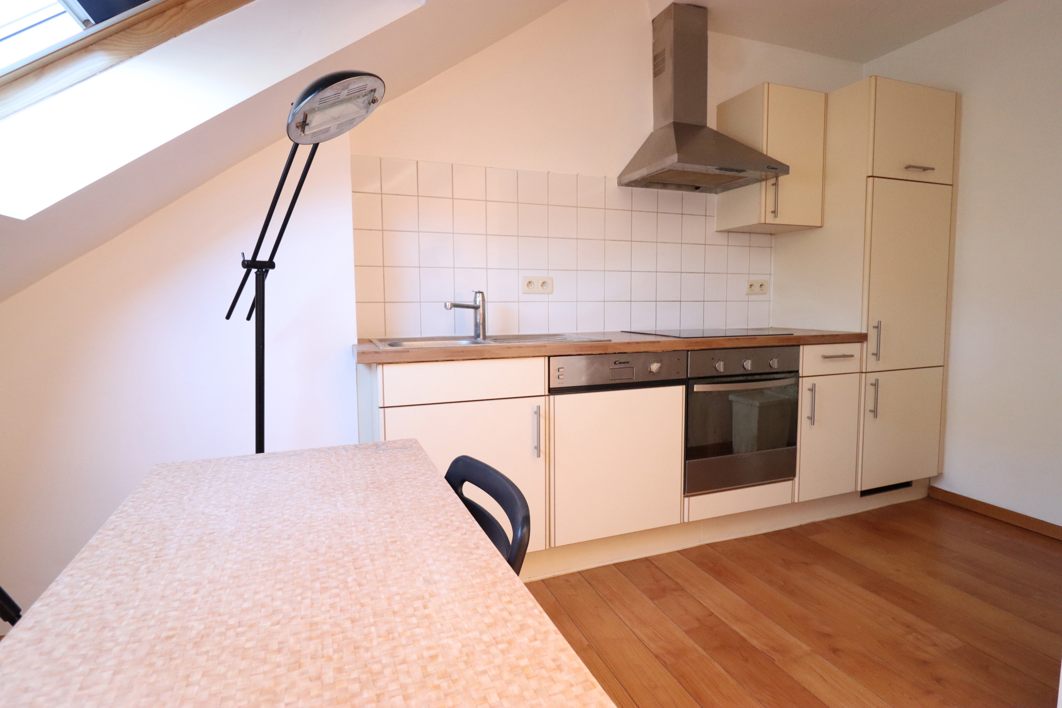 Wijk Cee - Place Jamblienne de Meux, in een klein condominium gelegen op de 4e verdieping (zonder lift) studio van +/- 55 m2, bestaande uit; een woon-/eetkamer, ingerichte keuken en doucheruimte, toilet, enz. PEB E. + vaste prijs van 95€/maand kosten (alles behalve internet en tv) - min. 1 jaar - Info & bezoeken: 04 78 711 328.